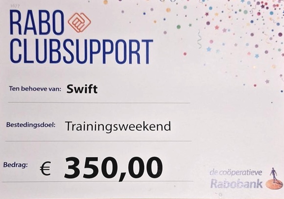 In september 2025 hebben we gevraagd om te stemmen bij Rabo Club Support voor Swift aangepast wielrennen. We willen namelijk met een zo’n groot mogelijke deel van onze trainingsgroep aangepast wielrennen mee met een trainingsweekend dat we organiseren voor mensen met een verstandelijke, mentale of fysieke beperking. Dat kamp organiseren we samen met ouders van andere wielrenverenigingen en er komen renners uit het hele land samen. Daaraan deelnemen is voor de onze sporters een van de hoogtepunten van het jaar en belangrijk voor de sportieve en sociale ontwikkeling. Het is een van de weinige mogelijkheden om met wielrenners met een beperking uit heel Nederland samen te komen.